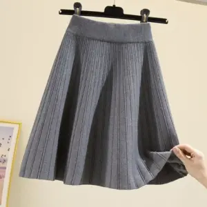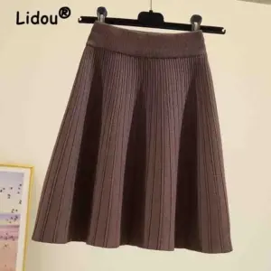 Knitted High Vintage All-match Skirts for Women Short 2022 New Korean Style Pleated Autumn Chic Women’s Clothing A-line Skirt