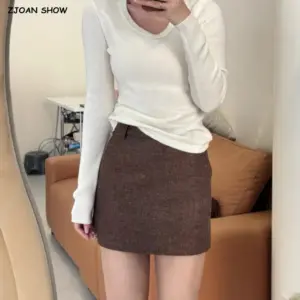 2025 Autumn Side Split Woolen Mini Skirts Women High Waist Slimming Short Skirt Korean Streetwear Sexy Spicy A-Line Skirts Mujer