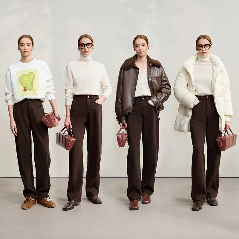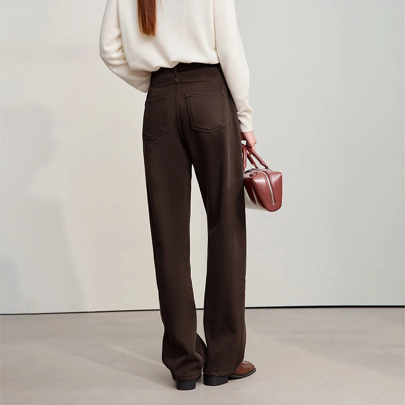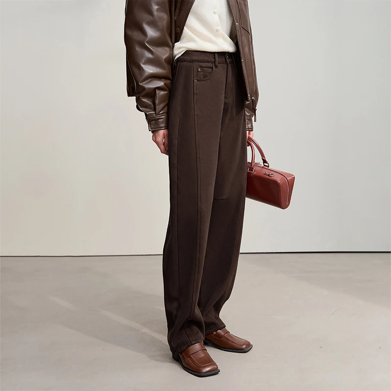 Amii Cotton Jeans 2025 Winter New Solid Color Loose Wide-leg Denim Pant Thicken Warm Versatile Jean Trousers For Ladies 12554073