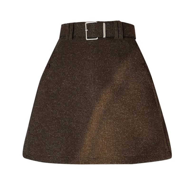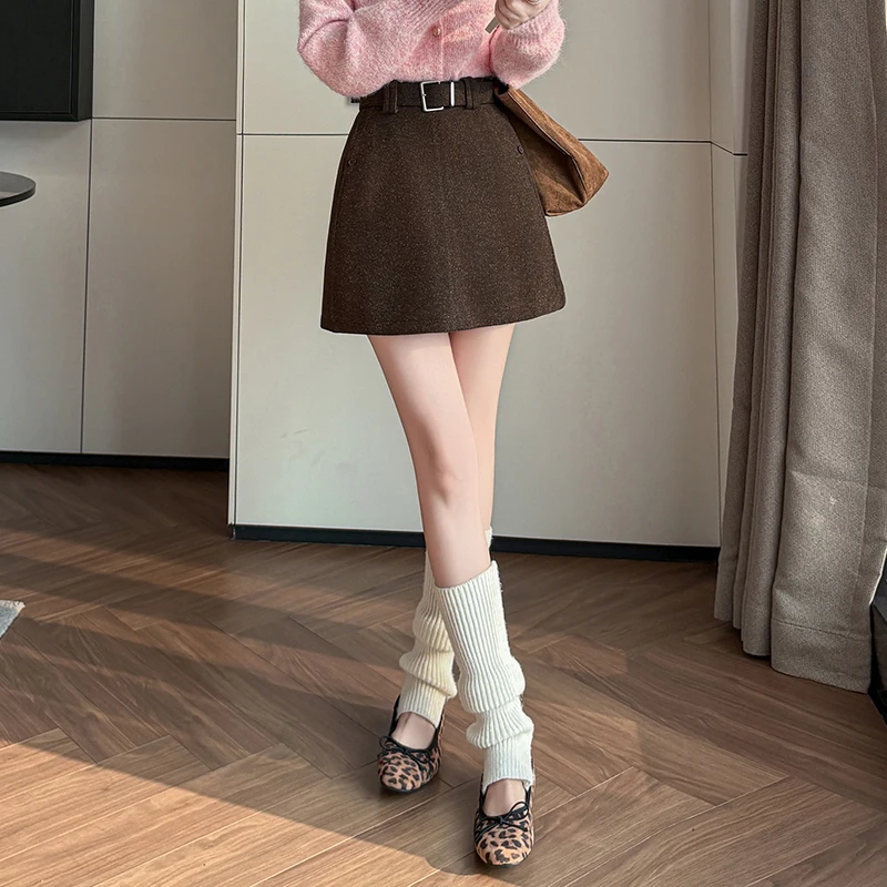 Seoulish Autumn Winter New Vintage Woolen Women’s Short Skirts with Belted High Waist Korean A-line Sexy Mini Skirts Female