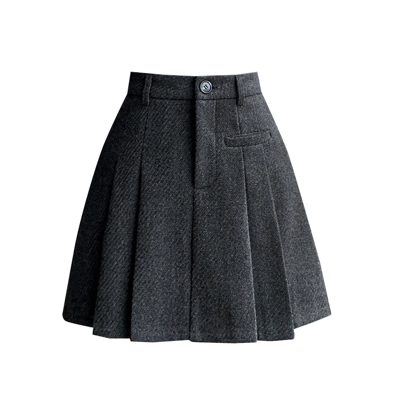 2024 Autumn Winter Soft Woolen High Waist Mini Skirt Women A-line Package Hips Short Skater Party Femme Camel Gray